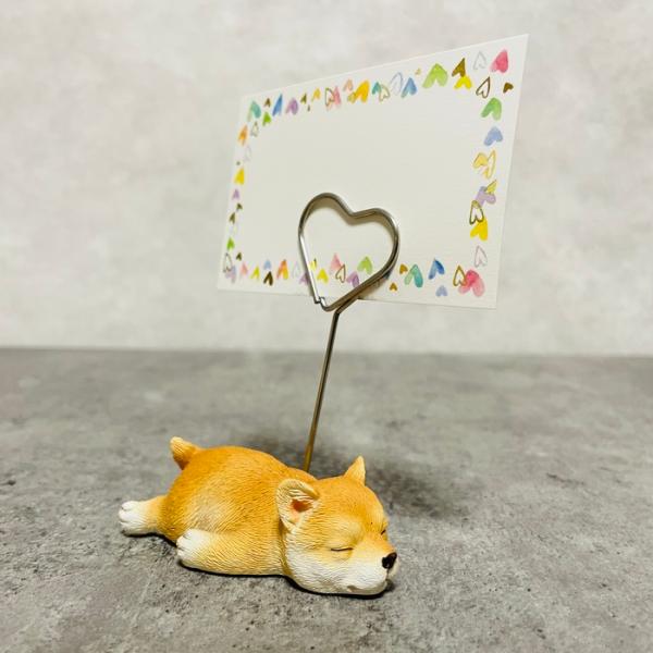■可愛いイヌのメモスタンド 柴犬 かわいいメモクリップ 置物 インテリア 動物 卓上 雑貨 メモホルダー カードクリップ