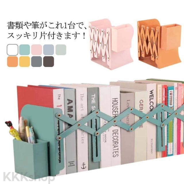 ファイル 本 本立て ペン立て付き 収納 ケース ラック ボックス ブックスタンド 置物 おしゃれ 可愛い 北欧 A4 ファイルボックス ホワイト ブラック 卓上 オフィス シンプル 仕切り 調節可能 伸縮性