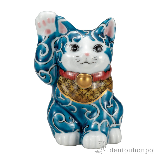 ■「送料無料」 招き猫 色絵唐草 4号 ( 木札名入れ有料 置物 幸運 開運 まねきねこ 風水 九谷焼 結婚 出産 内祝い 引き出物 金婚式 )
