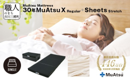 市川三郷町限定!!!30年ムアツマットレスX(エックス)ムアツシーツストレッチ跳ねるような弾力性のハイスペックモデルと専用シーツがセットになりました!【弾力性、耐久性が向上したハイスペックモデル】約30年を想定した圧縮残留ひずみ試験を実施。30年後もほぼ変わらない形状で長く使えることが証明されました。・中層をソフトな感触かつ高弾性の新素材を採用。今まで以上に3層が一体化して全体で体をやさしく支えます。・下層をより密度の高いウレタンフォームにバージョンアップしました。・表側地をシックなジャガード生地に変更。■上・中層は寝返りをサポートする高弾性ウレタン、全層に湿気を拡散する高通気ウレタンを使用01.血行を妨げにくい点で支える独自構造のため、身体との接触面積が少なくなり、血行を妨げにくく、寝