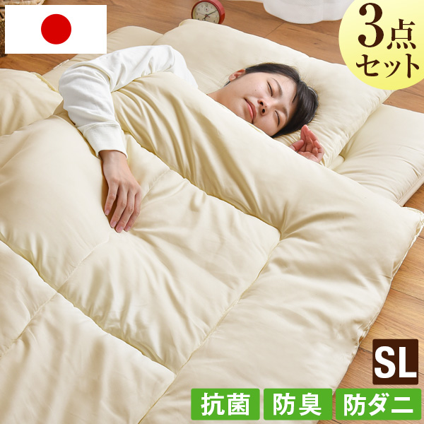 【清潔ふとんセット】 防ダニ 日本製 布団 3点セット シングルロング 布団セット 抗菌 防臭 敷布団 掛け布団 枕 布団 新生活 来客用【商品番号:39100201】
