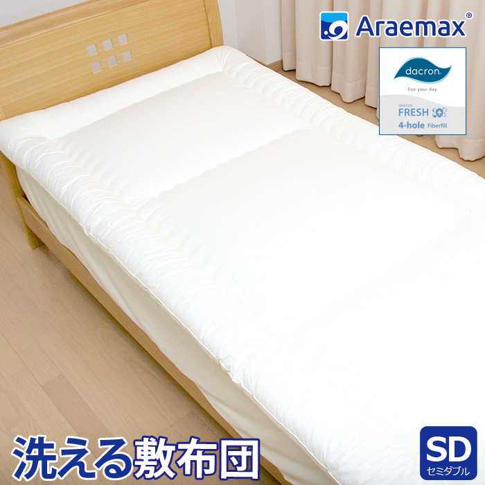 ■ダクロン(R)FRESH 4-hole(4穴)中わた使用 洗える敷布団 セミダブルサイズ 日本製 セミダブル 敷布団 洗える寝具 洗える布団 洗えるふとん