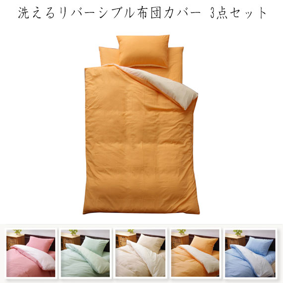 ■洗えるリバーシブル布団カバー 3点セット (布団カバー 枕カバー セット 掛け布団 敷布団 リバーシブル 洗える オールシーズン シンプル