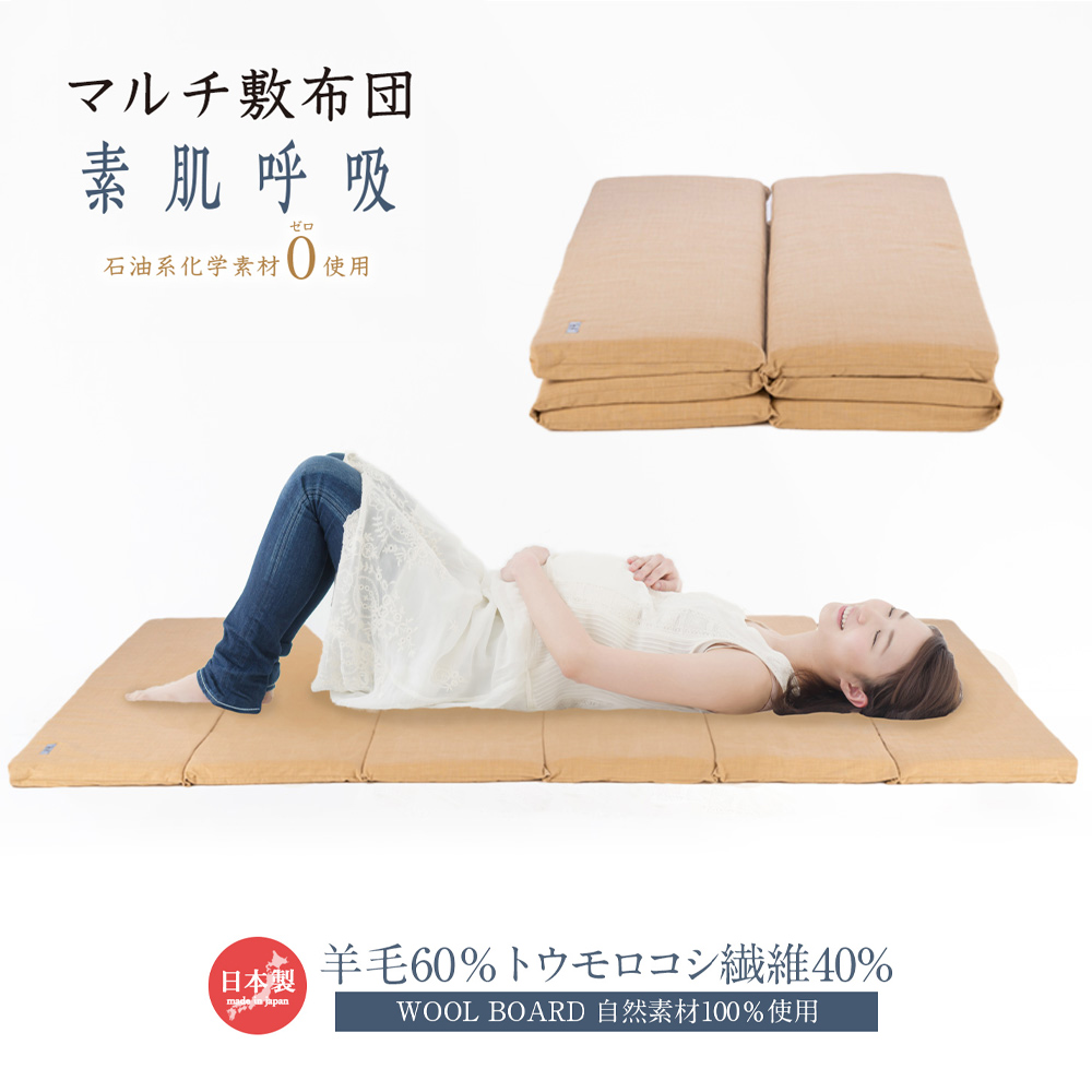 ■[ 6枚折れ マルチベッドマット ] 敷布団 マット ベッド 羊毛 トウモロコシ繊維 自然素材100% WOOL BOARD