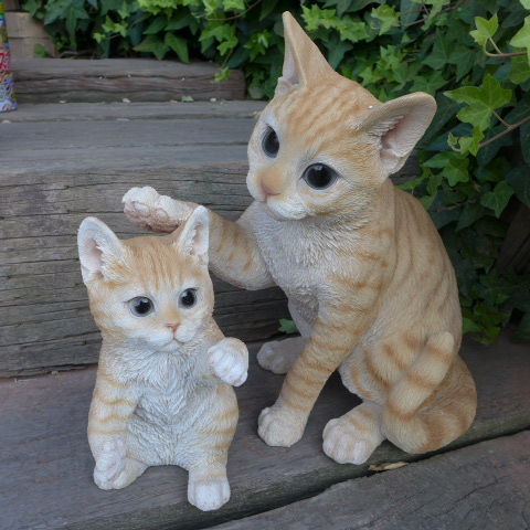 ■猫の置物 親子猫2匹セット Y77QY キャット ガーデンオブジェ CAT 動物 オーナメント ネコ 雑貨 ガーデン オブジェ