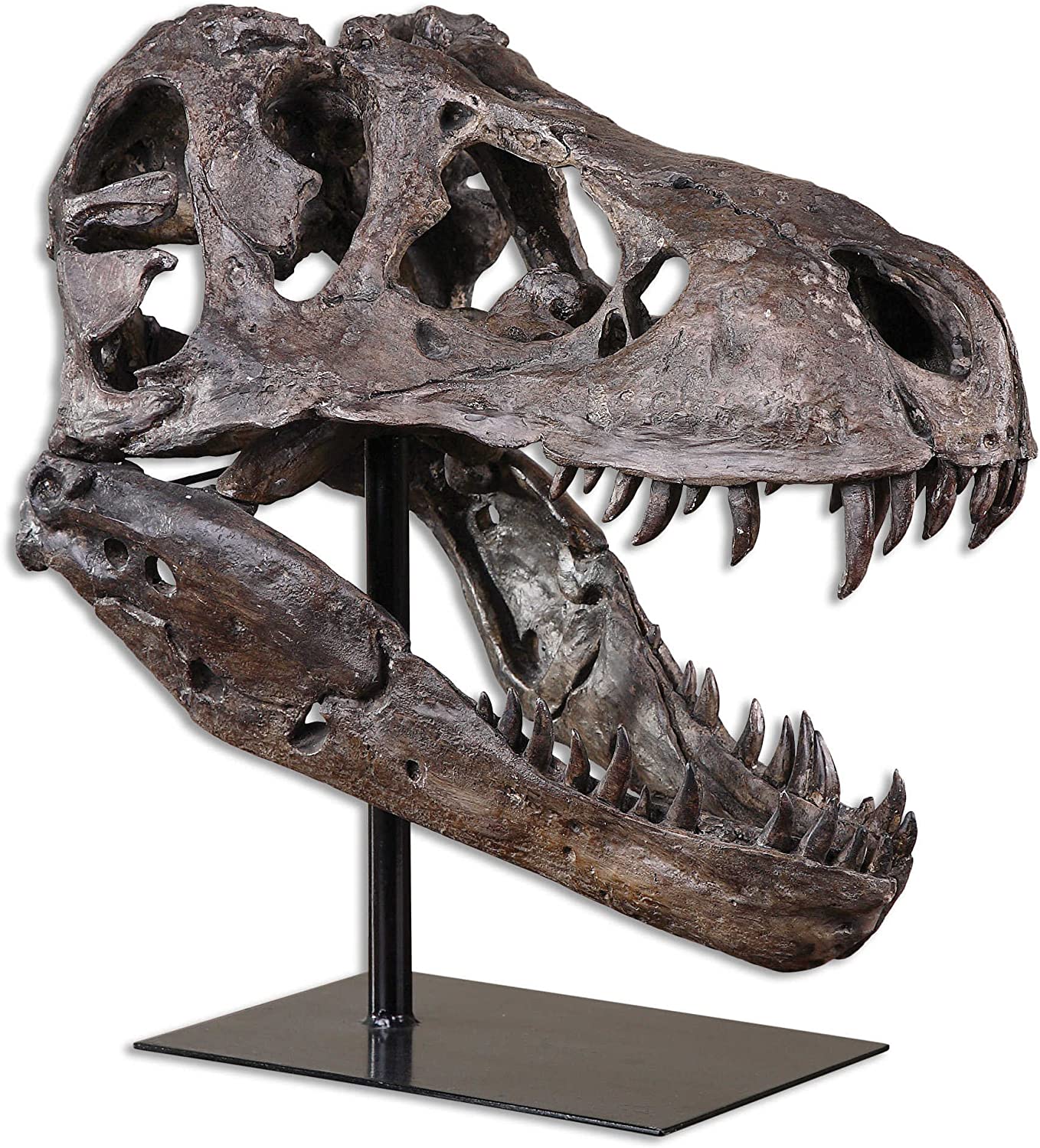先史時代のティラノサウルス恐竜の装飾スカル ブラックベース彫像 装飾彫刻 オブジェ 博物館 贈り物(輸入品
