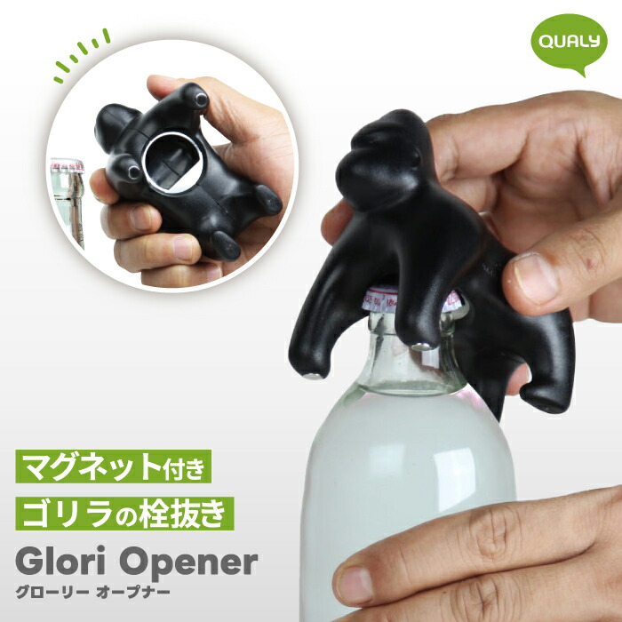■QUALY ゴリラ 栓抜き マグネット付き おしゃれ キッチン雑貨 瓶 ビール ジュース 開ける オブジェ 可愛い 動物モチーフ ガジェット 力強