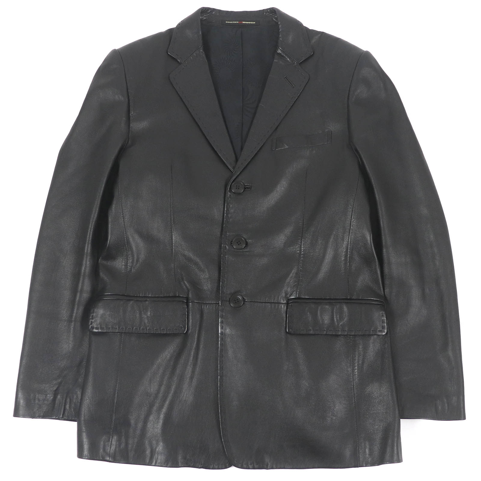 ■美品□GAULTIER HOMME objet ゴルチエ オム オブジェ ラムレザー シングル ブレザー テーラードジャケット ブラック 46 正規品 メンズ