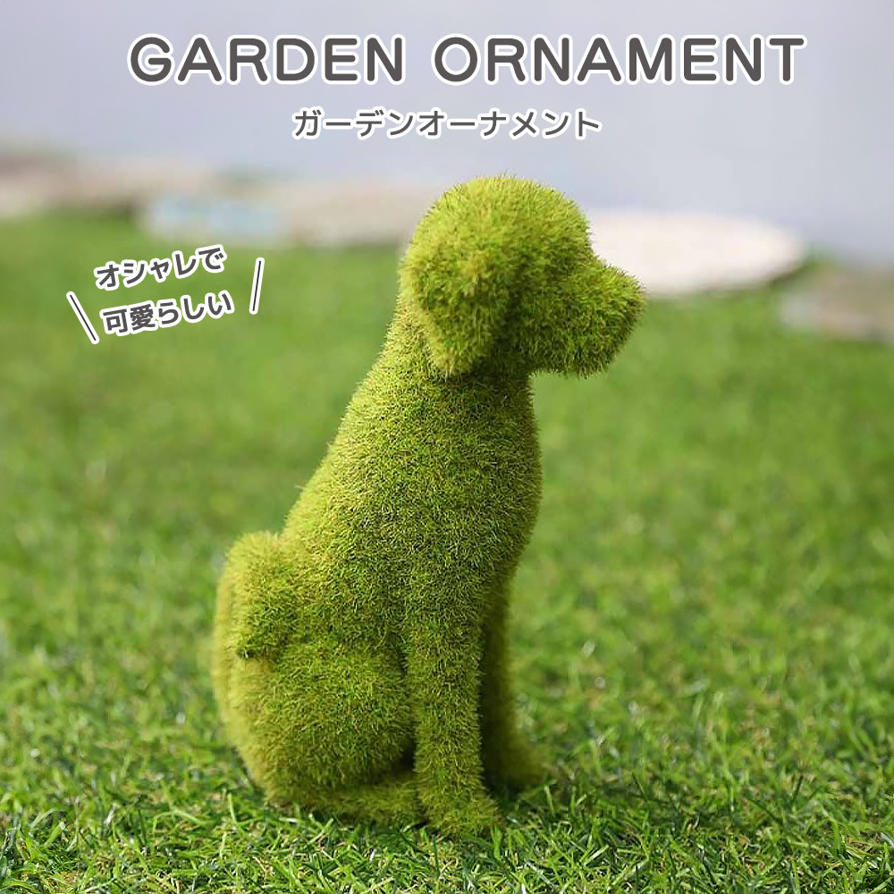 ■ガーデンオーナメント 犬の置物 ガーデン装飾 グリーン 人工芝風 オブジェ 座っている子犬