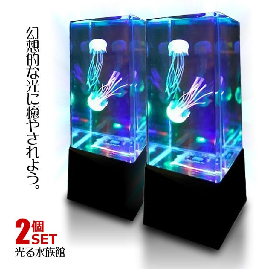 ■卓上アクアリウム アクアリウム LEDアクアリウム 卓上ミニ水族館 クラゲ LED インテリア イルミネーション 2個セット 卓上 オブジェ ミニ