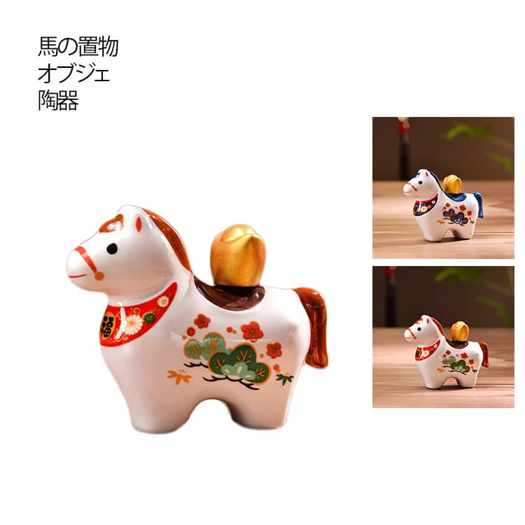 ■正月 オブジェ 雑貨 2026年 馬 午年 置き物 青 モダン 縁起物 うま セラミック製 北欧 とうき 干支 陶器 飾り 赤 ハンドメイド 幸福を運
