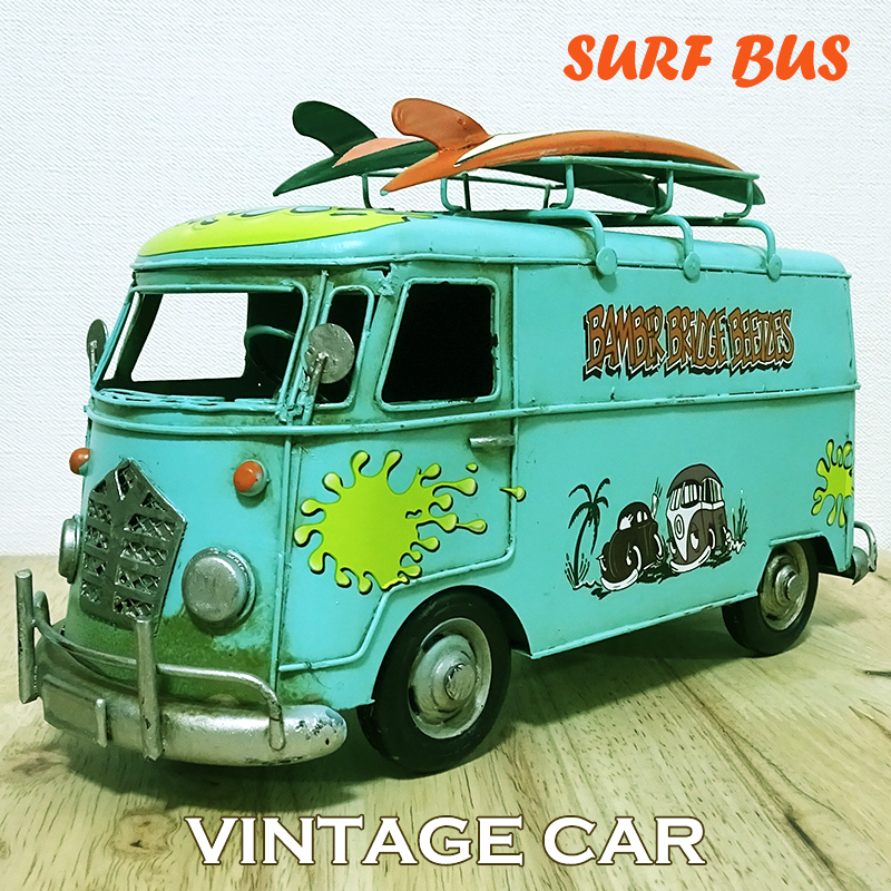 ■ヴィンテージカー 車 オブジェ 置物 サーフボード 可愛い ブリキ おもちゃ ポップ アメリカン 雑貨 バス ビンテージ ガレージ カフェ
