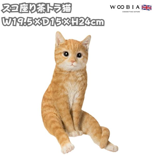 ■置物 動物 かわいい スコ座り茶トラ猫 ネコ 高さ28cm woobia おしゃれ 大きい 玄関 インテリア ガーデン オブジェ