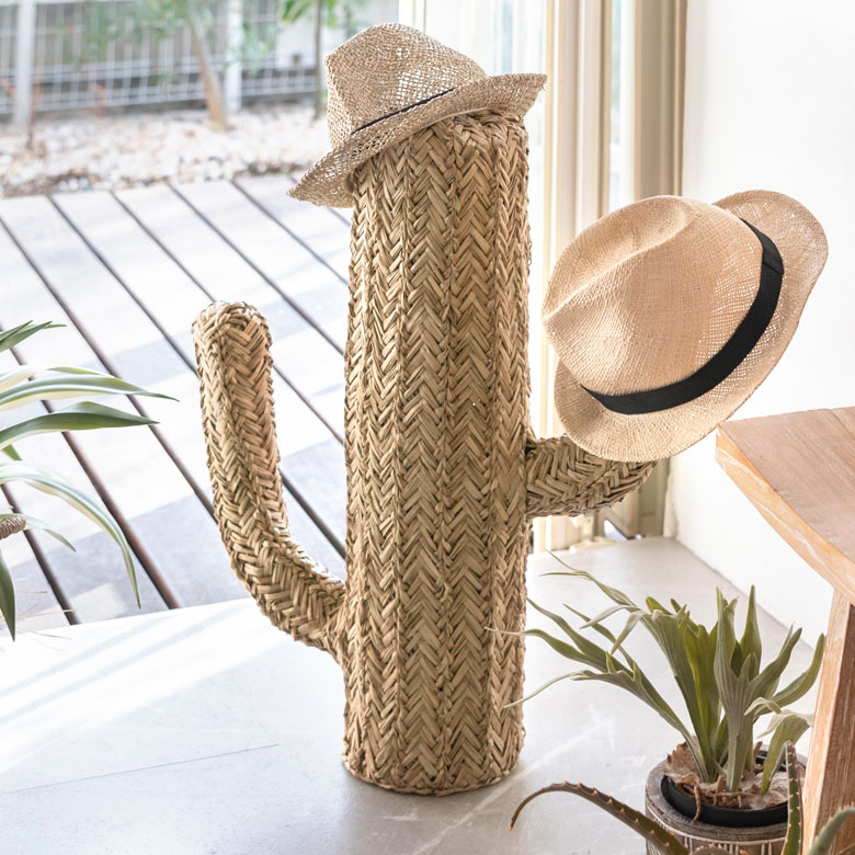 ■オブジェ サボテン Mサイズ シーグラス スタンド W 52cm D 15cm H 60cm 置物 ディスプレイ オーナメント ハット 帽子 置き 51286