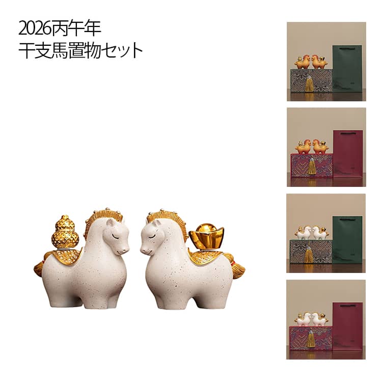 ■馬 置物 2026年 干支 午年 2点セット 干支飾り 馬の置物 オブジェ ホース 飾り 縁起物 風水グッズ 置き物 午 丙午年 玄関飾り ミニチュ