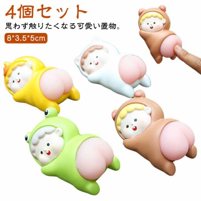 かわいい 置物 車の飾り 4個セット 車内 癒しグッズ 車 オブジェ 車内インテリア 飾り 装飾 ストレス解消 ダッシュボード装飾 弾力 お尻 カーアクセサリー もちもち 部屋 オフィス 韓国 インテリア