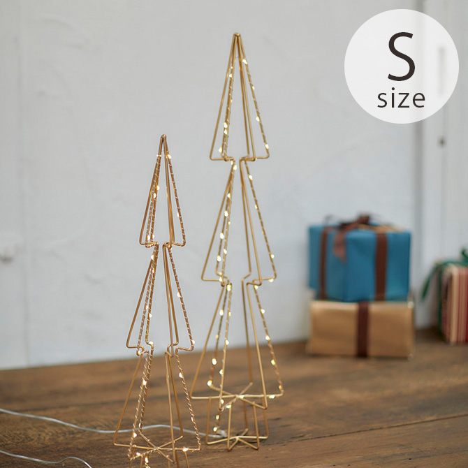 ■備考:収納する場所や飾る場所などを気にせず、簡単にクリスマスの雰囲気を楽しめるツリー型のLEDライト Sサイズ。を使わないLEDは、小さなお子さんやペットがいるご家庭でも安心。優しく柔らかい光でお部屋を演出してくれます。ベッドサイド、テーブル、本棚、玄関など、お好きな場所に置いてお楽しみいただけます。・6時間後に消灯、18時間後に点灯するタイマー付き。切り忘れの心配もありません。・単3乾電池3本使用。(電池は別売りです)・デザインボックス入りで、ギフトにもおすすめです。・S・Lの2サイズ展開。(こちらはSサイズのページです。)■商品サイズ:幅11×奥行き11×高さ45cmワイヤー長さ:50cm■材質:LEDライト、鉄■原産国:中国■ご注意点:・単3乾電池3本使用(別売)・連続点灯時間約150時間(電池の種類や使用環境、ご使用頻度によって異なります)・タイマー付き:6時間(6時間後に消灯、18時間後に点灯します)