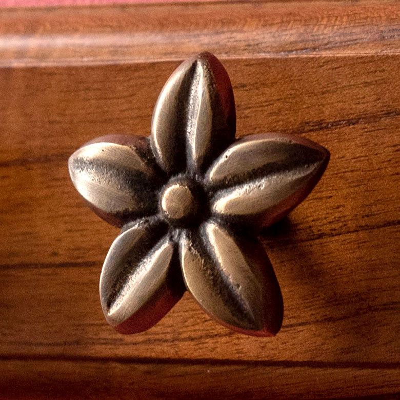 ■取っ手 フランジパニ型 プルメリア 花 幅5cm アンティーク風 真鍮製 つまみ オブジェ アジアン DIY 付け替え バリ雑貨