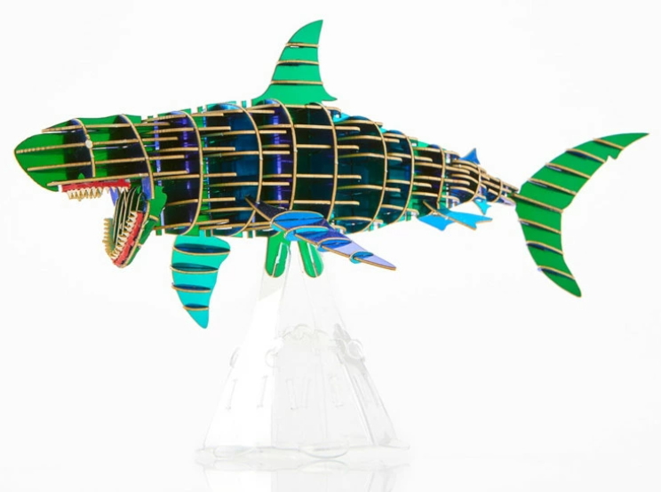 ■パズミー PazuMe 3D立体ペーパーパズル U3830 DXほおじろざめ (MOVE) グリーンメタル / 玩具 インテリア オブジェ 釣具 メール便可