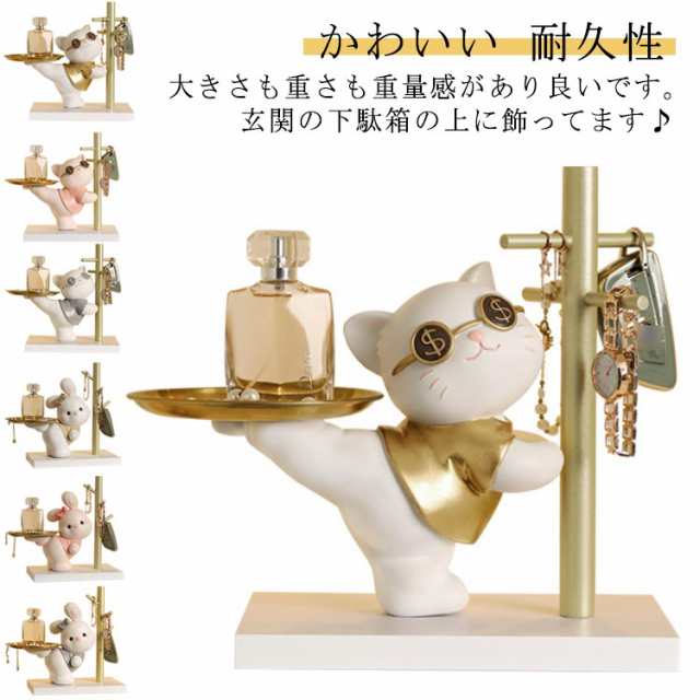 置物 玄関 招き猫 置きもの トレイ インテリア 鍵掛け 小物収納 トレー 猫 インテリア 兎 おしゃれ 収納 オブジェ 卓上 トレー 受付 キャッシュトレー つり銭トレー 飾り 動物 かわいい クリスマス 誕生日 ギフト