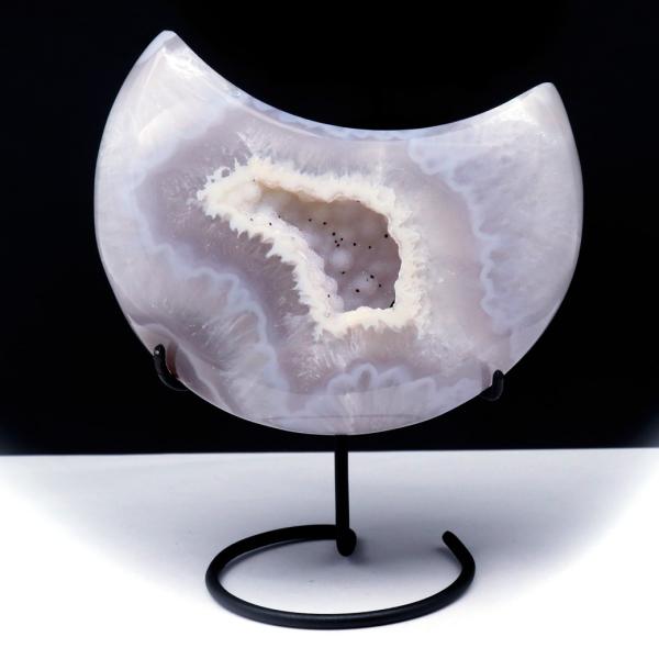■メノウ 月型 台付き 置き物 ブラジル産 アゲート 278g 瑪瑙 水晶 ムーン オブジェ インテリア おしゃれ 天然石 パワーストーン スピリチ