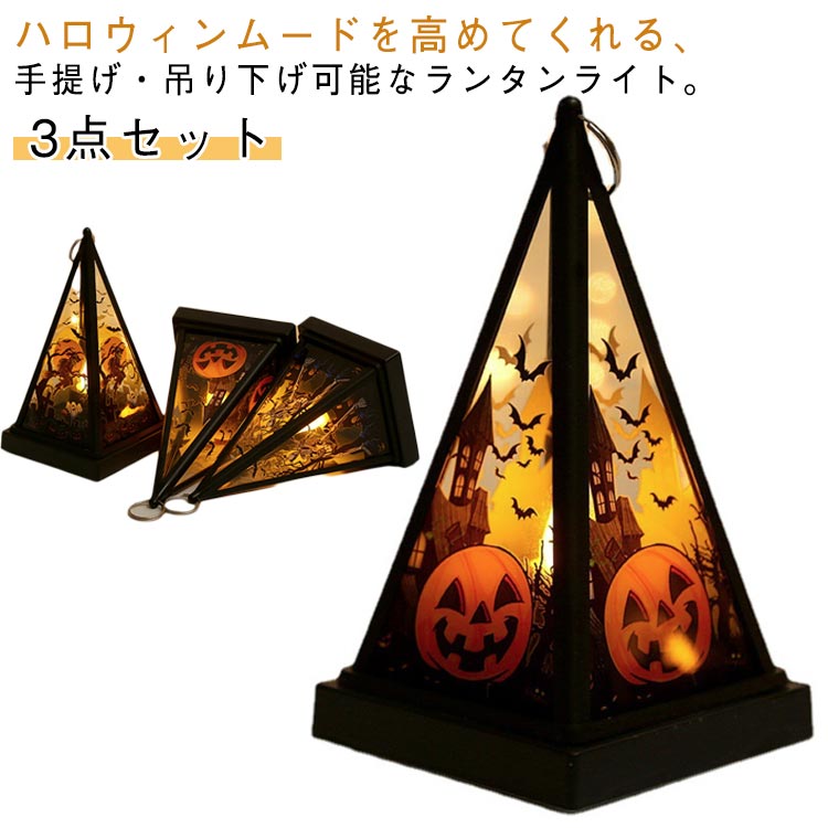 ■飾り 3点セット イルミネーション カボチャ ハロウィン カボチャライト 置物 オブジェ ランタン 装飾 吊り下げ 魔女 ハロウィンランタン