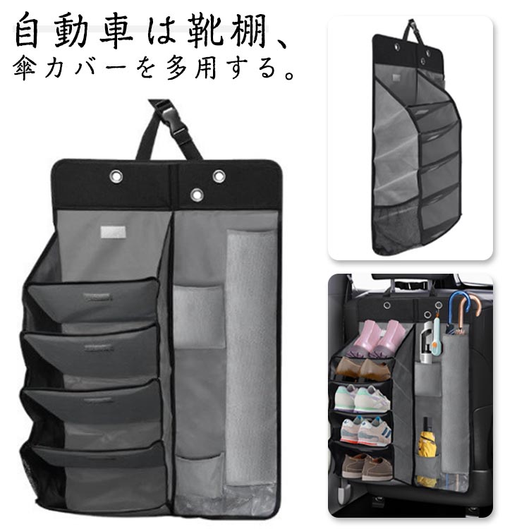 ■車 傘ホルダー カーシューズラック 車用 収納ラック 靴入れ 傘立て 傘ホルダー 小物収納グッズ 靴棚 靴置き下駄箱 折りたたみ式 車用傘