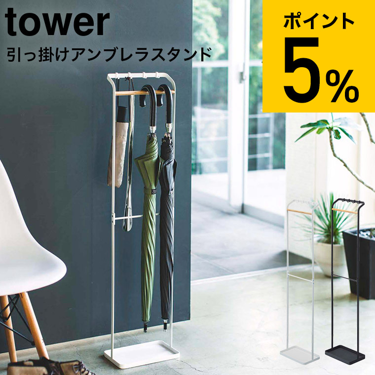 ■tower 山崎実業 送料無料 引っ掛けアンブレラスタンド タワー ホワイト ブラック 傘立て アンブレラハンガー スリム 玄関収納 折り畳み傘
