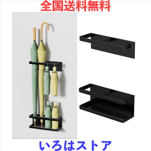 ■GAGUIUP 傘立て マグネット フック付き アンブレラスタンド 玄関収納 傘入れ トレー付き 多機能傘収納 玄関の壁掛け式 ブラック