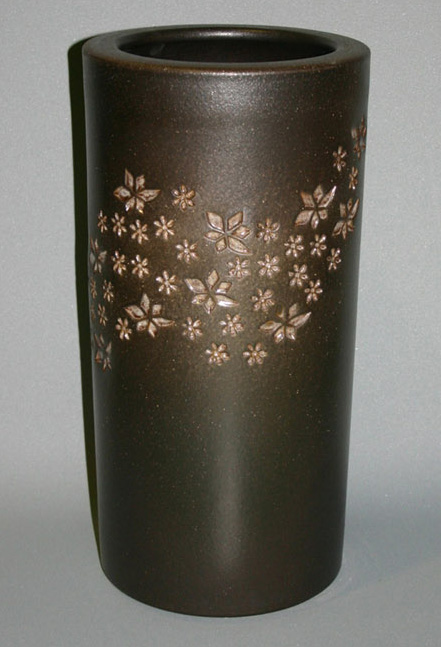 黒釉小花傘立[信楽焼 陶器 置物 傘立]日本家屋から現代的な建築まで、土味を生かした信楽焼の傘立が玄関に彩りを添えます。お客さまをお迎えする顔として、玄関のアクセントとして、家の表情を演出します。思いを伝える。気持ちを形にする。信楽焼の陶器はご自宅用に業務用に贈り物にも最適です。■サイズ:幅23.5cm高さ48cm(約)■国産品※ひとつひとつが手づくり品のため、色合いや大きさ形が微妙に異なる場合がございます。 1250年の伝統の匠の技が作り出す、表情豊かな信楽焼の置物。※本商品は製造元(滋賀県信楽)よりの直送商品です。メーカーより直接お客様にお届けすることにより低コストを実現いたしました。 ※全国送料無料!ただし、沖縄・離島一部地域は追加送料がかかる場