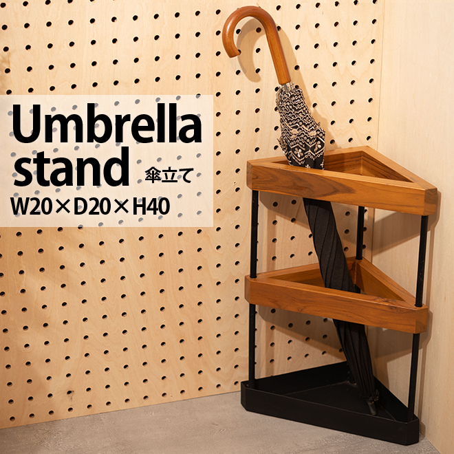 ■傘立て スリム おしゃれ スチール 天然木 木製 ブラック ブラウン 三角形 トライアングル シンプル モダン 傘置き 収納 アンブレラスタン