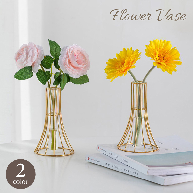 ■花瓶 花器 フラワーベース 一輪挿し フラワースタンド インテリア 卓上 装飾 置物 ワイヤーフレーム ガラス 試験管 北欧風