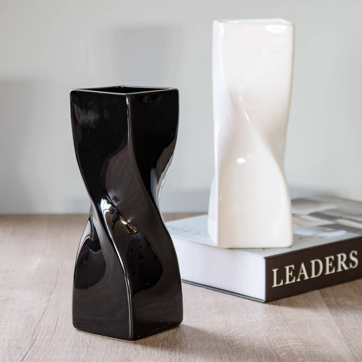 ■花瓶 モノトーンフラワーベース 陶器 幅6.5×奥行6.5×高さ20cm ( フラワーベース 花びん 花器 ベース ロング 角型 ひねり 花 花入れ 生