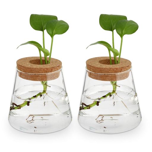 ■KICHVOE 水耕栽培 ガラス花瓶 2個セット おしゃれ 花瓶 小さい卓上装飾 木製蓋付き フラワーベース 透明 ガラス容器 家庭 オフィス用