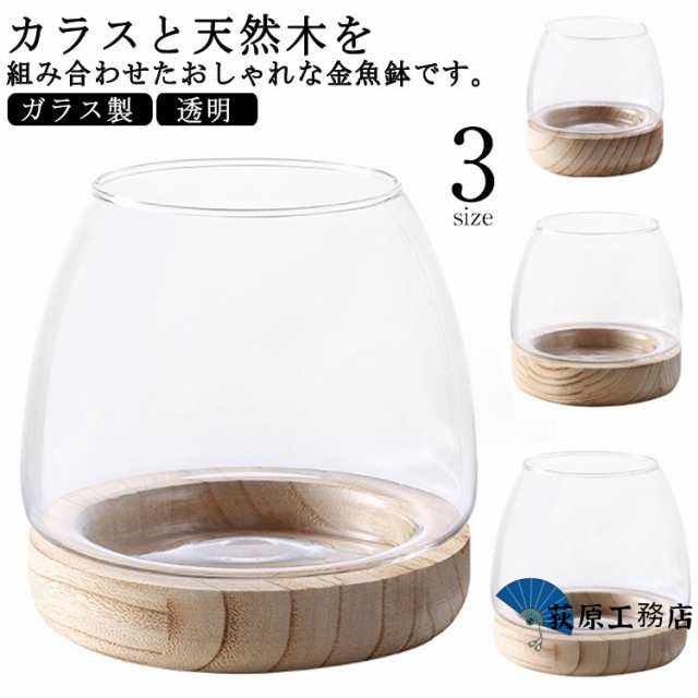 睡蓮鉢 丸 丸型 透明 ガラス製 メダカ鉢 水槽 クリア 天然木 鉢 ガラス花器 多機能 観葉植物 おしゃれ メダカ コケリウム 苔テラリウム 水鉢 手水鉢 花瓶 インテリア 金魚 砂あそび アカヒレ ベタ 砂場 金魚鉢