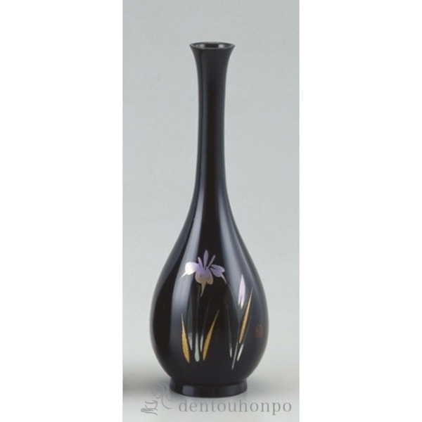 ■「送料無料」 銅製花瓶 蒔絵 鶴首 アヤメ 8号 「即日発送対応」 ( あすつく 木札名入れ有料 花瓶 フラワーベース 花器 仏間 おすすめ )