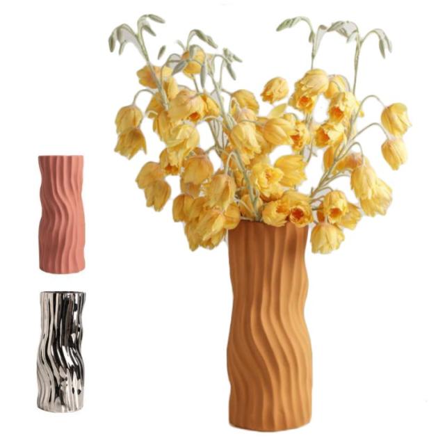 花瓶 陶器 大きい 高27.5cm 白 フラワーベース おしゃれ 陶器 大型 ホワイト おしゃれ 陶器 北欧 インスタ映え スウェーデン オレンジ レット シルバー