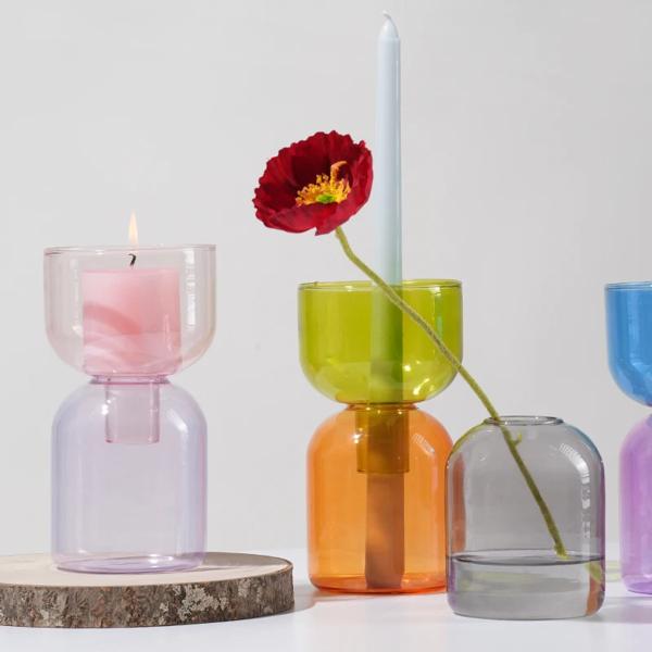■花の組み合わせのための透明なガラスの花瓶,装飾的なボトル,燭台,キャンドルホルダー,デスクトップ