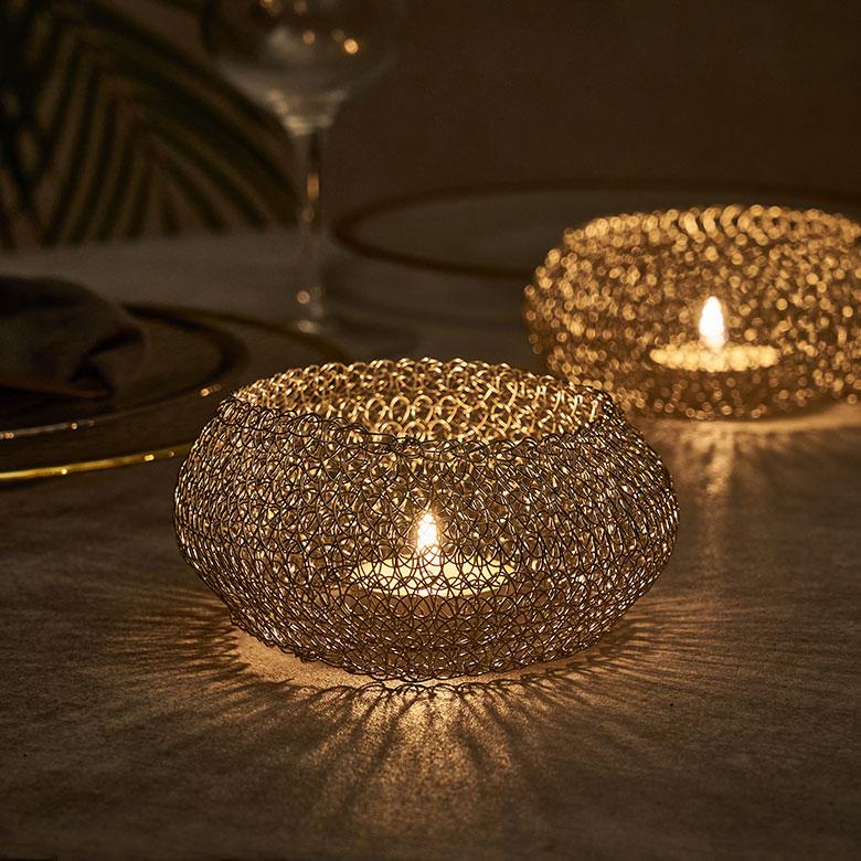 ■キャンドルホルダー キャンドル ホルダー ティーライトキャンドル ろうそく ティーライト ローソク W10×D10×H4cm ステンレス ワイヤー