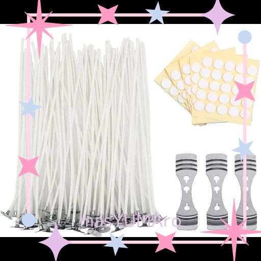 ■キャンドル芯 100本セット 20CM ろうそく芯 綿100%のキャンドル材料 キャンドルホルダー 芯固定ホルダー 5個 DIY手作り 座金付き 丸形両