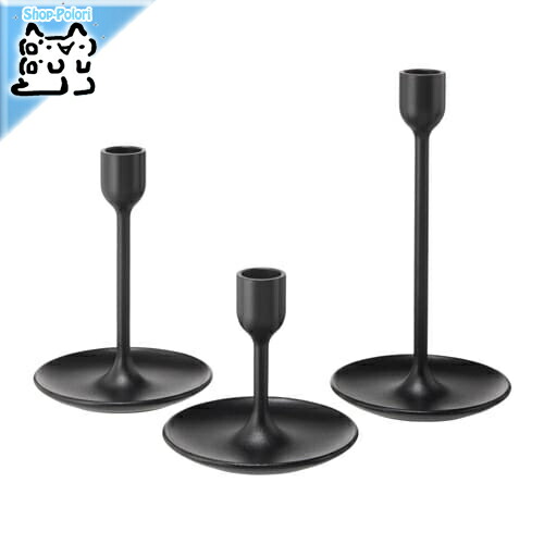 ■【 IKEA - イケア -】FULLTALIG -フルターリグ- キャンドルホルダー3個セット ブラック 10、15、20cm (103.421.35)