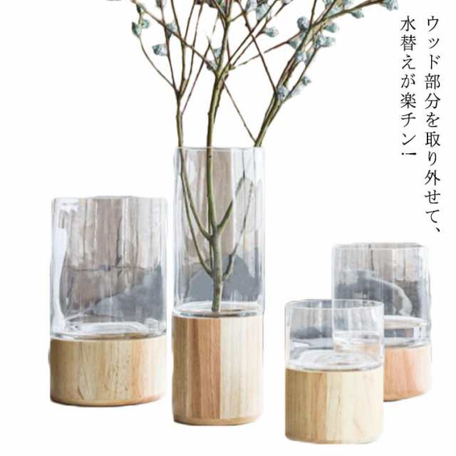 【Mサイズ】直径10cm 高29cm フラワーベース ガラス 木製 花瓶 北欧 大きい 花器 キャンドルホルダー ガラス 無垢 職人のハンドメイド シンプル 円柱 丸 天然木 母の日 ギフト プレゼント ギフト