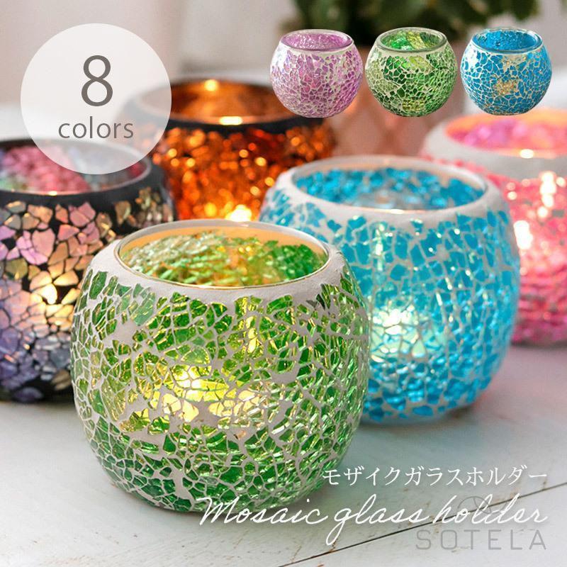 キャンドルホルダー ガラスホルダー キャンドルスタンド 北欧 トルコ 夏 インテリア 涼しげ 雑貨 癒し 硝子 モザイクガラス ガラス容器