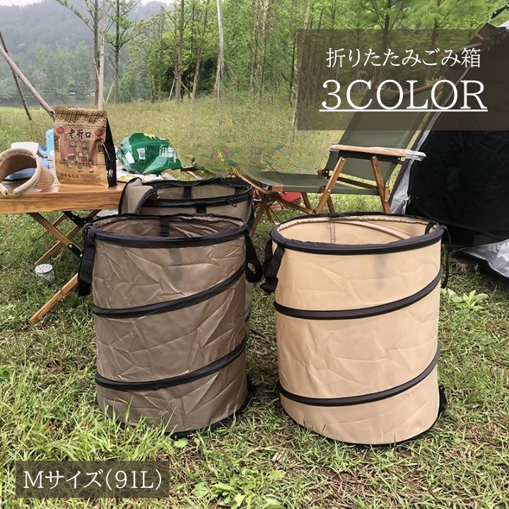 ■ごみ箱 91L 折り畳み 大容量 アウトドア キャンプ 持ち手 バケツ ダストボックス トラッシュボックス ポップアップ シンプ