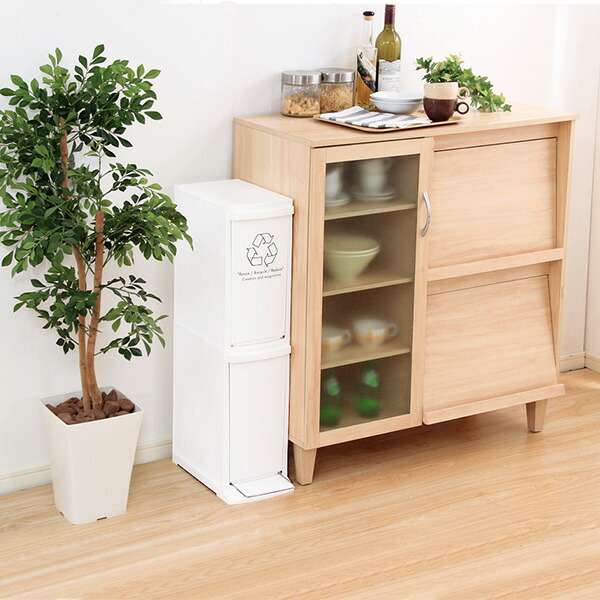 ■ゴミ箱一体型食器棚 幅26.6cm ゴミ箱1つタイプ 45L対応 ヴィンテージ ( ごみ箱 食器棚 スペース 付き 収納付き おしゃれ スリム 棚 家具