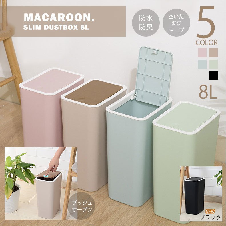 ■ダストボックス ゴミ箱 ごみ箱 ふた付き 8L 防水 防臭 バスルーム スリム ワンプッシュ開閉 キッチン 一人暮らし シンプル 全5色 送料無