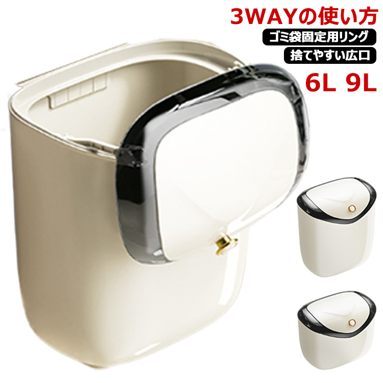 ■ぶら下げごみ箱 9L ごみ箱 ゴミ箱 6L 大容量 蓋つき 広口 2種類容量 多機能 ふた付き 壁掛け 3way スライダー式 壁かけ 壁掛け式 ぶら下