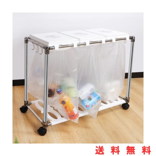 ■【30L×3分別】ゴミ袋ホルダー 分別 ゴミ箱 キャスター付き 20L〜30L袋可 ごみ箱 ダストワゴン 蓋付き ゴミ袋スタンド スリム 縦開き お