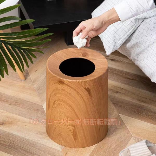 ■ゴミ箱 木目調 丸型 ダストボックス ウッド トラッシュカン リビング ごみ箱 くずかご ゴミ袋隠せる