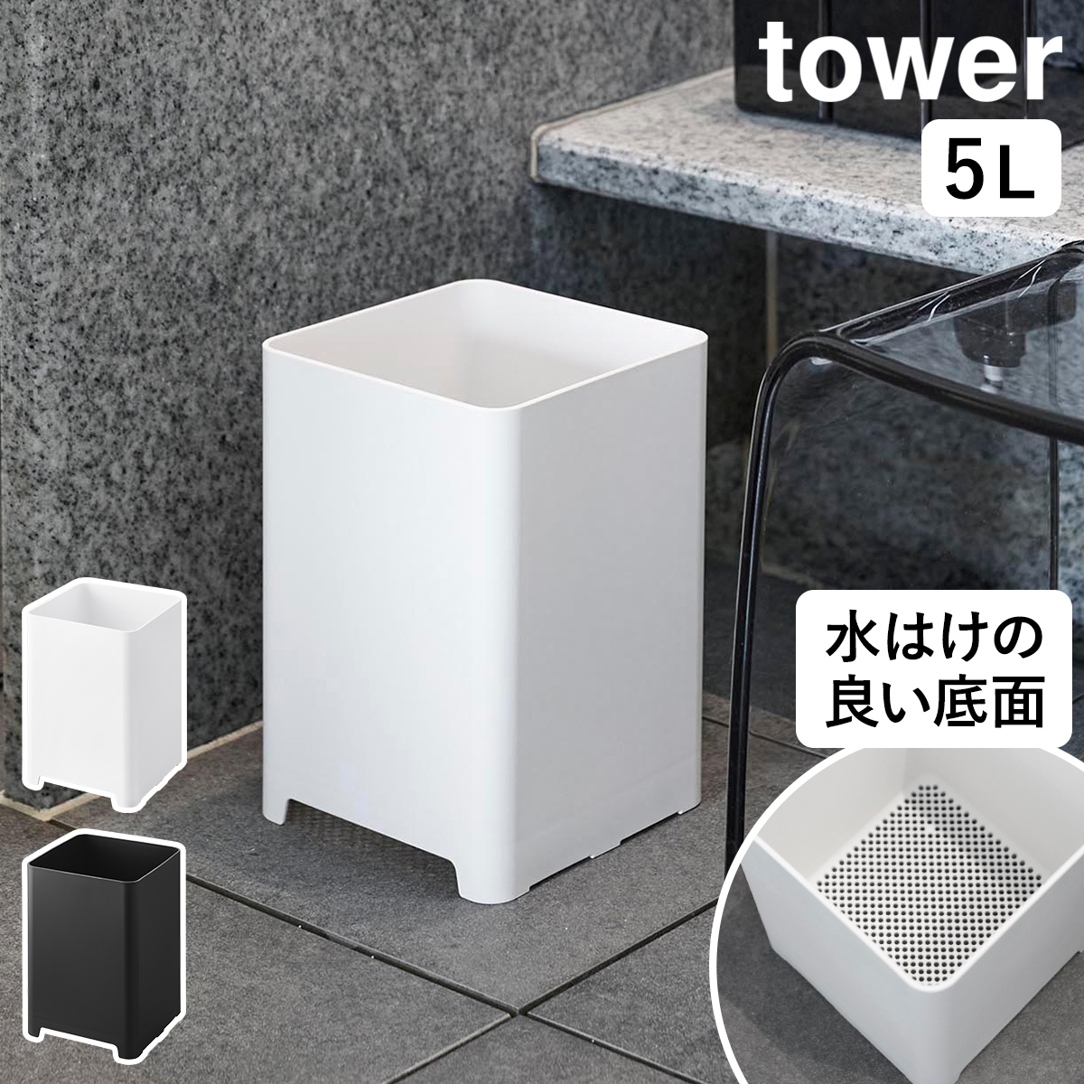 ■[ 水が抜けるゴミ箱 タワー 5L ]山崎実業 tower ゴミ箱 バスルーム サニタリー 収納 ダストボックス ごみ箱 浴室 大浴場 ホテル 旅館